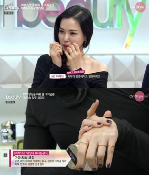 이날 이하늬는 기초 스킨케어 단계 마무리로 마유 크림을 꼭 사용한다고 밝혀 이목을 사로잡았다. 그는 "마유크림을 바르고 자면 에스테틱에 다녀온 것처럼 피부가 쫀쫀해지고 수분이 꽉 찬 느낌이 든다. 특히 겨울에는 피부도 건조해져서 제 경우 이런 제형의 제품을 많이 바르는데, 그럴 때 마유크림이 제격"이라고 극찬했다.