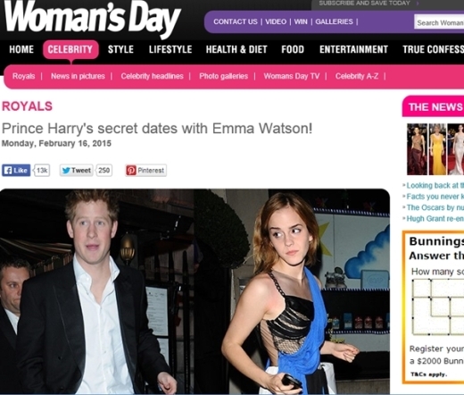 2월 20일(현지시각) 우먼스 데이 보도에 따르면 엠마 왓슨과 해리 윈즈 왕자는 최근 비밀 데이트를 즐기고 있는 것으로 전해지고 있다.
