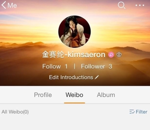 공개된 사진에는 김새론이 새로 만들었다는 웨이보의 첫 화면이 담겨 있어 눈길을 끌고 있다.