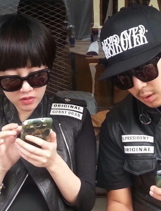 검정색 옷으로 색깔을 맞춰 입은 옷이 커플룩 같으면서 다른 듯한 느낌을 주고 있다.