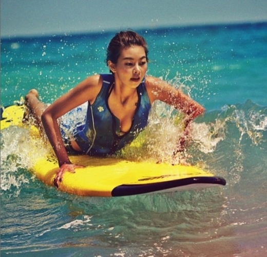 공개된 사진 속 송해나는 바닷가에서 보드를 타고 서핑을 즐기고 있다. 특히 그의 구릿빛 피부의 섹시한 자태가 눈길을 끈다.