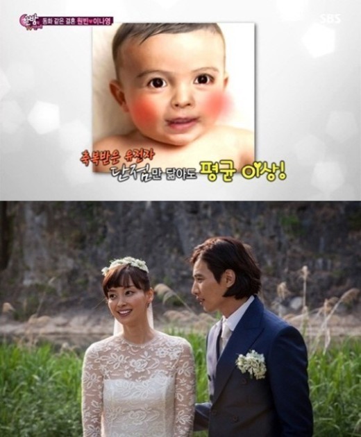 지난 6월 방송된 SBS 프로그램 '한밤의 TV 연예'에서는 원빈 이나영 부부의 결혼 소식을 전하며 둘의 가상 2세 모습을 사진으로 공개했다.