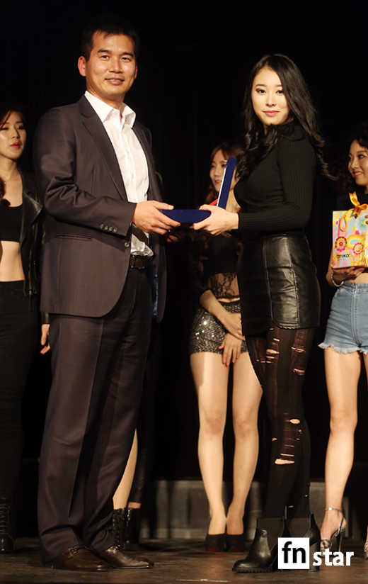 21일 오후 서울 마포구 서교동 홍대 롤링홀에서 열린 ‘슈퍼모델 패전트 대회’에서 대상 조리카에게 이조로 변호사가 수상하고 있다./사진=김현우 기자