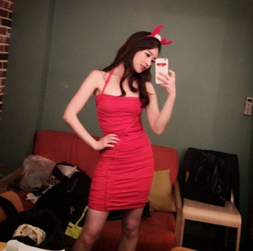 공개된 사진 속 양정원은 레드 드레스를 입고 빨간 루돌프 머리띠를 한 채 몸매를 과시하고 있다. 특히 양정원의 S라인 몸매가 돋보인다.
