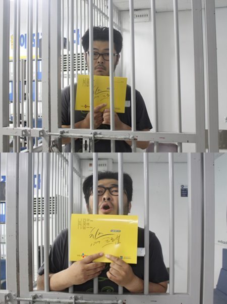 공개된 사진 속 김기방은 유치장 안에 갇힌 채 ‘치즈인더트랩’의 대본을 들어 보이고 있는 모습이다. 특히 편안한 티셔츠 차림에 머리띠를 한 모습이 원작 속 공주용의 모습과 흡사해 시청자들의 호응을 얻고 있다.