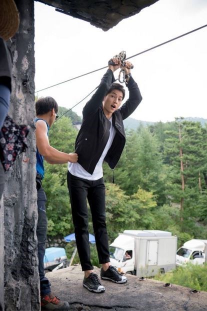 사진은 레펠에서 하강을 준비 중인 송중기의 모습이 담겨 있다. 사진 속 송중기는 카메라를 향해 깜찍한 표정을 짓고 있어 여성 팬들의 가슴을 설레게 했다.