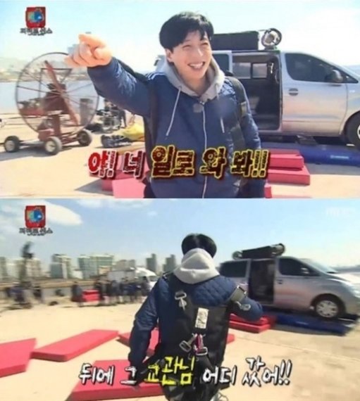 이어 유재석에게 벨트를 채우려고 하자 기겁을 하면서 긴장을 감추지 못했고 특히 스카이다이빙의 세계에 온 걸 환영한다는 말을 듣자 마구 흥분했다.