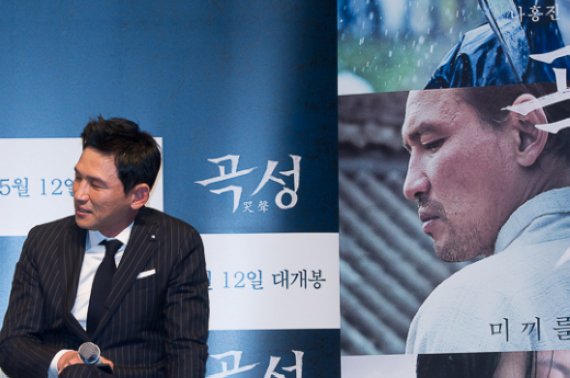 배우 황정민이 7일 오전 서울 압구정 CGV에서 진행된 영화 '곡성' 제작 발표회에서 질의응답 시간을 갖고 있다.