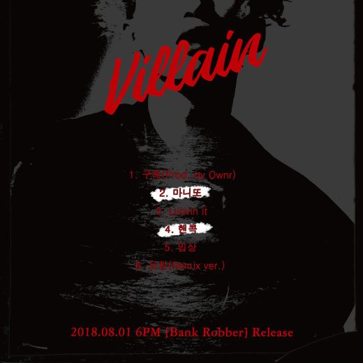 플라네타리움 레코드(PLT)는 지난 25일 빌런의 첫 번째 미니 앨범 ‘뱅크 로버(Bank Robber)’의 트랙리스트를 공개했다. 앞서 공개된 티징 이미지에 이어 한층 어두워진 분위기가 돋보여 빌런이 보여줄 음악에 대한 궁금증을 키운다.