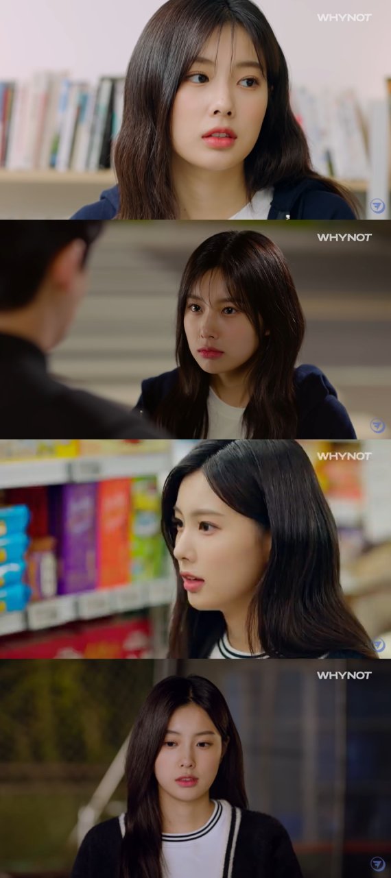 강혜원은 지난 18일과 20일 오후 6시에 방송한 유튜브 채널 콬TV 웹드라마 '일진에게 반했을 때'에서 화양대학교 여신 진세희 역으로 출연해 열연을 이어갔다. 진세희는 전 남자친구 도예석(원필 분)과 동아리 MT를 준비하며 복잡한 심경을 드러냈다.