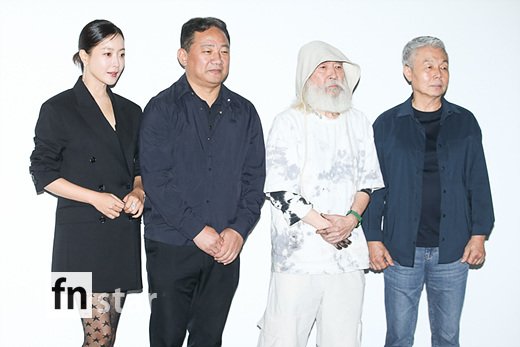 [FN스타 이승훈 기자] 배우 김희선, 이이남, 강형구, 김강용 작가가 26일 서울 영등포구 더현대 서울에서 진행된 아트 프로젝트 ‘아름다운 선물 展’ 언론간담회에 참석전 포즈를 취하고 있다.