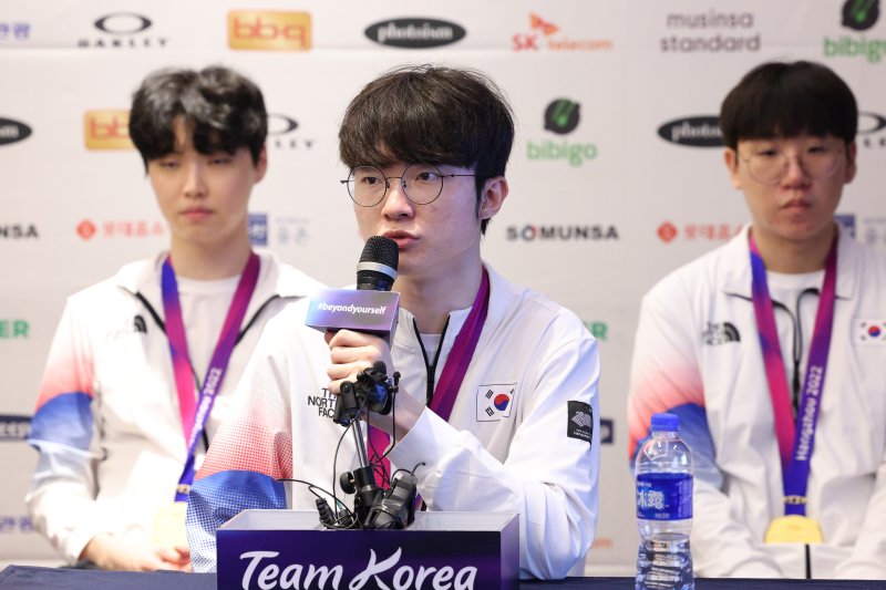 '페이커' 이상혁이 30일 중국 항저우의 한 호텔에서 열린 2022 항저우 아시안게임 메달리스트 기자회견에서 취재진의 질의에 답변하고 있다. 페이커는 항저우 아시안게임 e스포츠 리그 오브 레전드(LoL)에서 금메달을 수확했다. 사진=뉴스1
