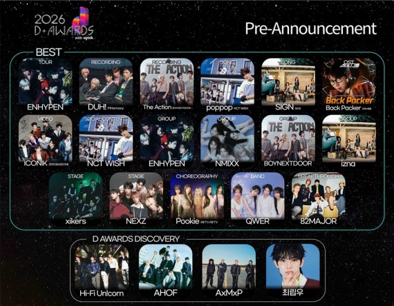 '제2회 디 어워즈(D Awards with upick)'는 오늘(6일) 고유의 사전 시상 제도인 '프리 어나운스먼트(Pre-Announcement)'를 통해 수상자를 공개하며 오는 11일 개최되는 본식에 대한 기대감을 높였다.